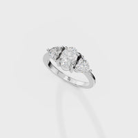 Three Stone Oval & Heart Cut Diamond Engagement Ring